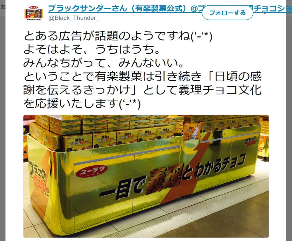 ゴディバとは対極(!?)に位置するブラックサンダー(有楽製菓)が数日後、Twitterで意外な行動にでました。