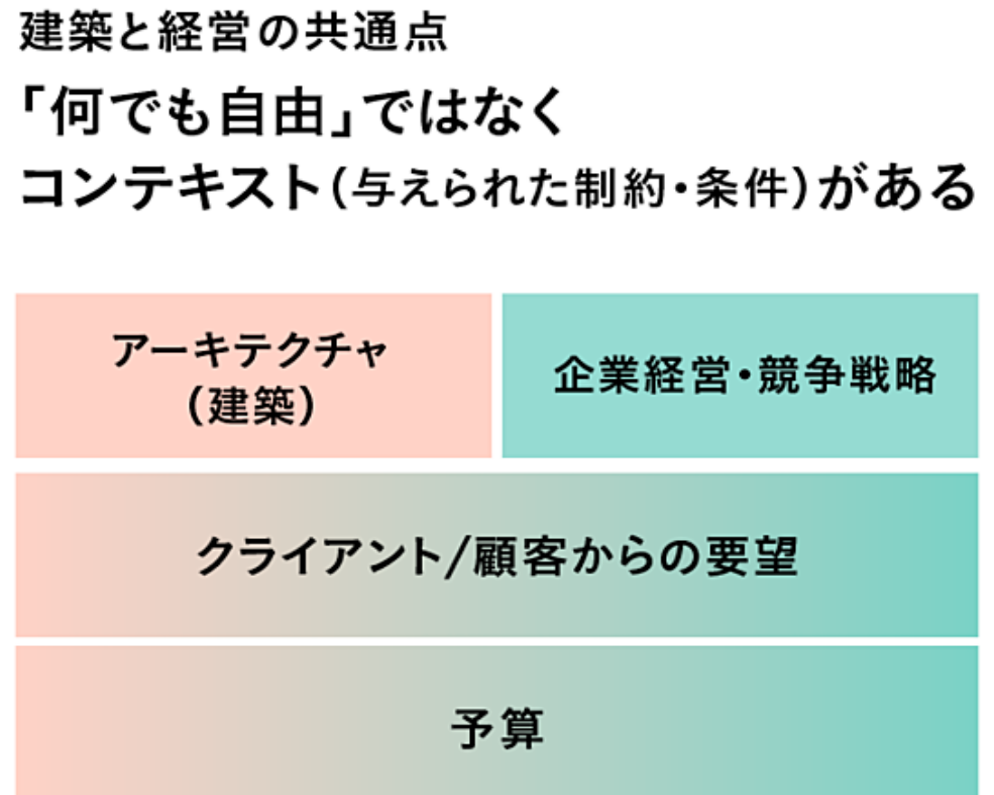 これは、西澤氏が挙げる建築分野の特徴であり、この思考が「アーキテクチャ思考」だと言っています。