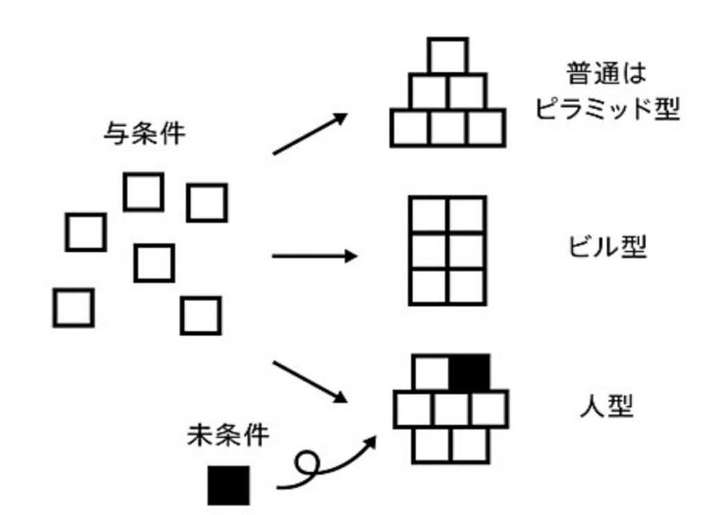あるいは(追加要素である)「未条件」を加えることで、人型のように組むことができるかもしれないと考える。