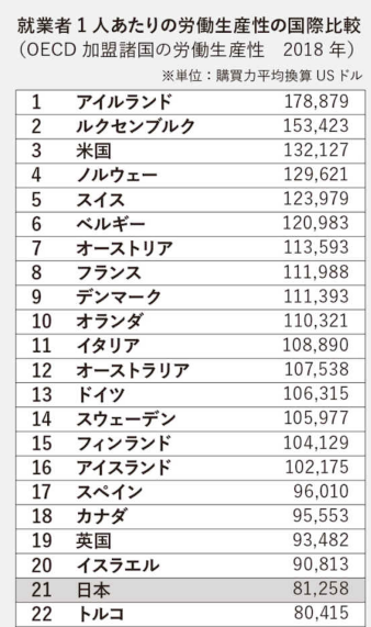 実際、日本はいつの間にか「先進国中で最低の生産性」の国になっています。