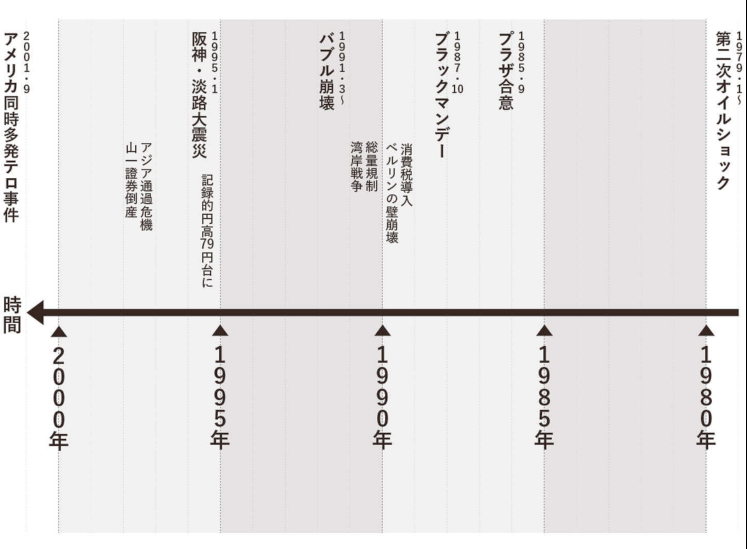 この20年間だけのこと?と感じるかもしれませんが、それ以前の20年間もこの20年間ほどではないかもしれませんが、「滅多に起きない」と言われるような大きな変化が5年に1回の頻度で起きていることがわかります。